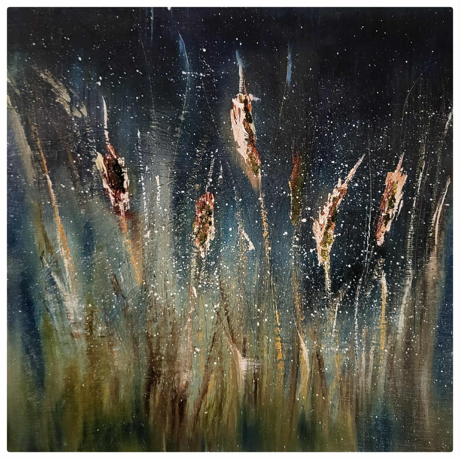 Oljemålning 32×32 cm Vit hemsnickrad träram Pernilla Moberg