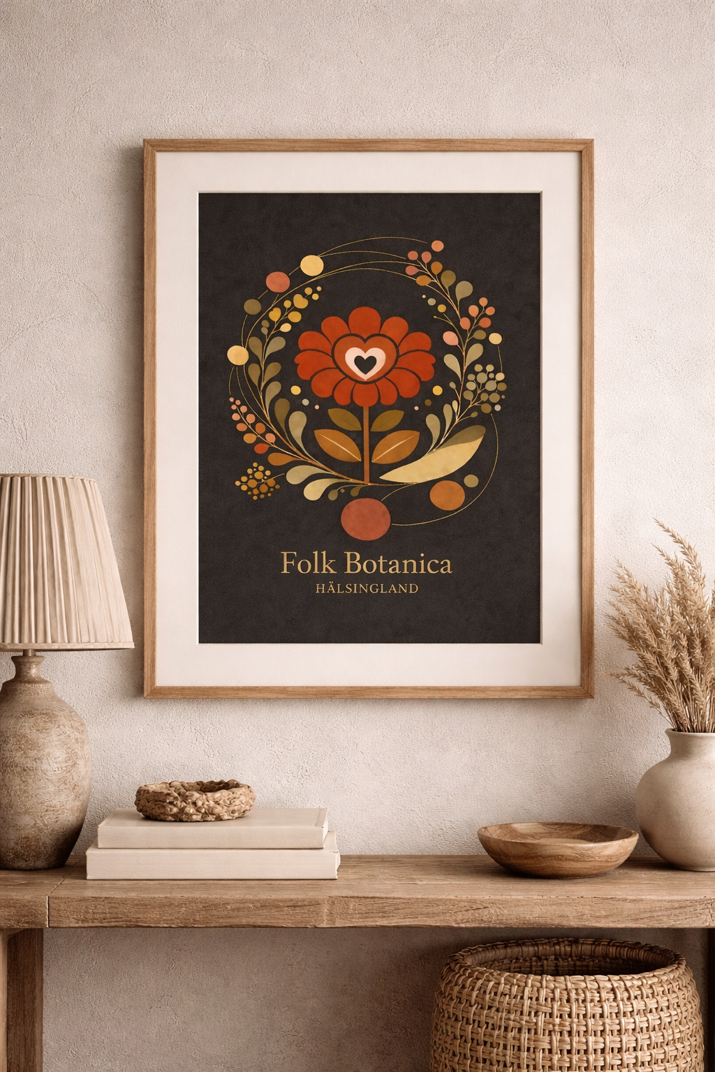 Grafisk poster inspirerad av former och mönster från Hälsingland tolkad i ett samtida uttryck av Jennie Söderlund. Format A3 Tryckt på matt fine art papper.